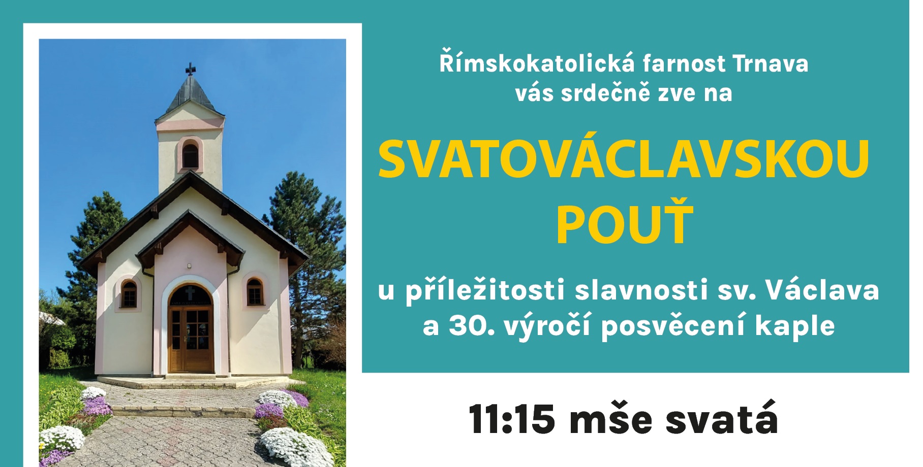 Vážení občané, v neděli 28. září se v 11.15 hod. uskuteční tradiční Svatováclavská pouť u příležitosti 30. výročí vysvěcení kaple sv. Václava. Bohoslužba bude po celou dobu doprovázena dechovou hudbou a celebrována P. Pavlem Hödlem.